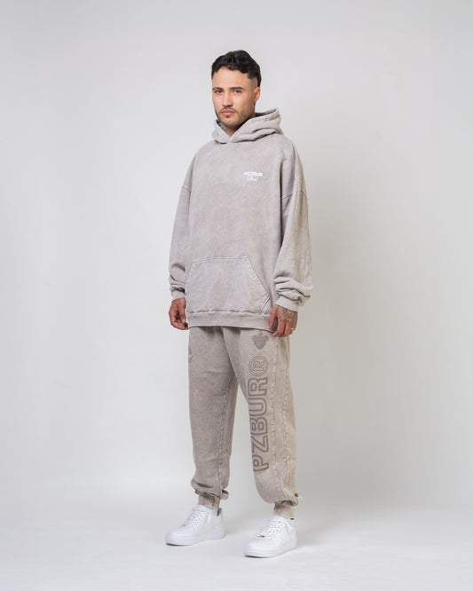 Dept Cropped Hoodie Alta - Gris Acid Wash