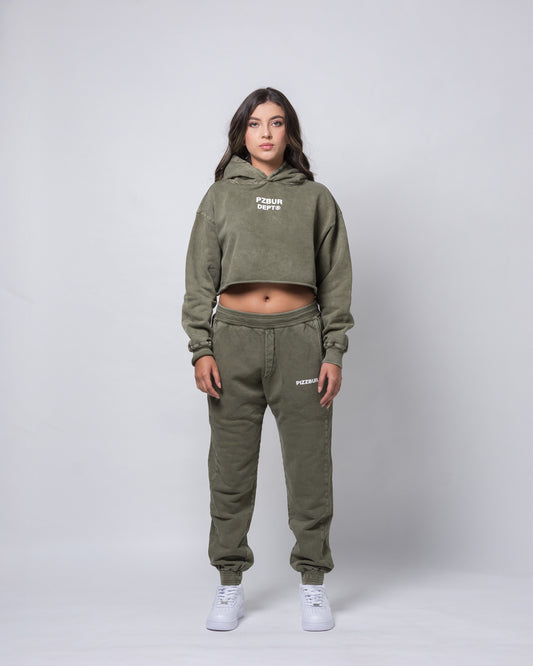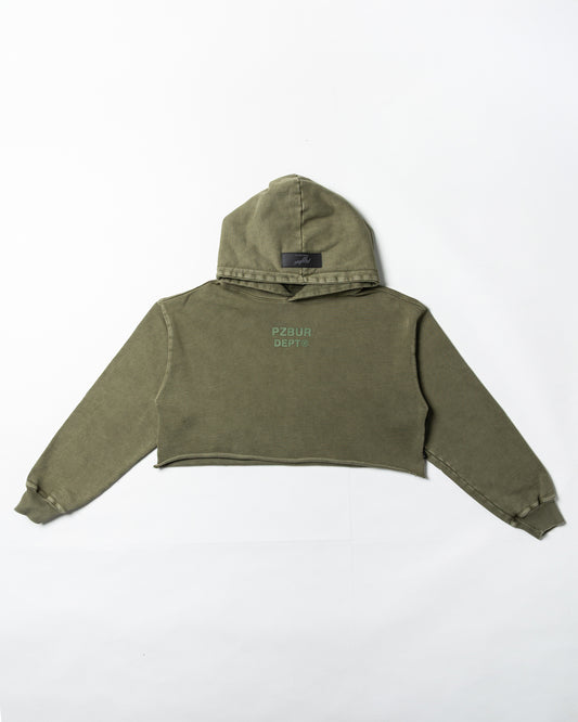 Dept Cropped Hoodie - Verde Oliva Acid Wash