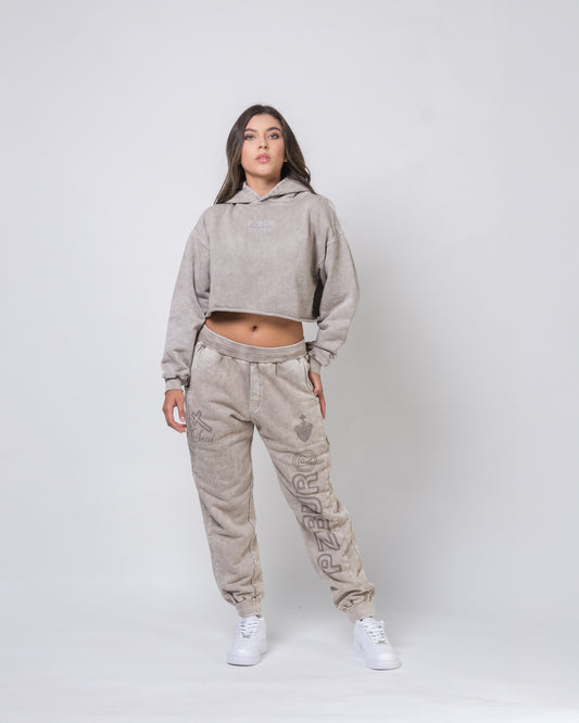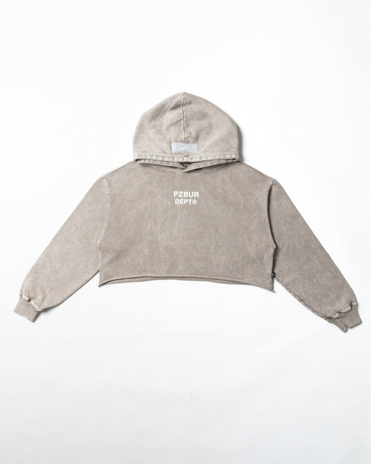 Dept Cropped Hoodie Alta - Gris Acid Wash