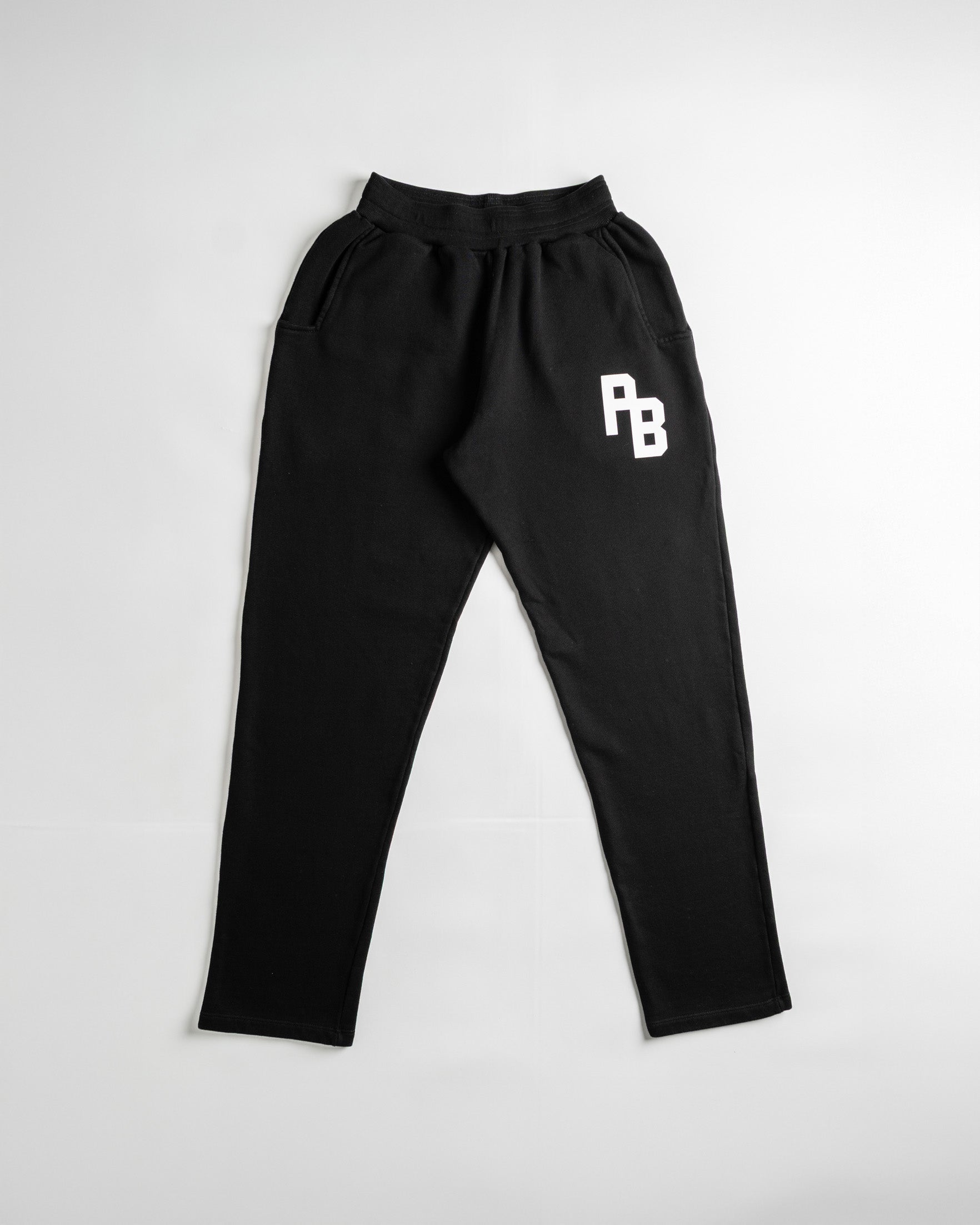 Jogger color negro de molde oversized, elaborado en tela burda 100 % algodón de alto gramaje (400g), intervenido con estampado en semi alta densidad blanco pierna izquierda debajo del bolsillo.